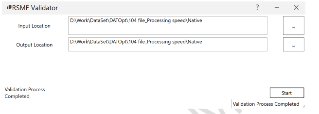 Select Input Folder: Choose the directory containing your RSMF files that need validation. -